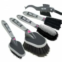 Das Muc-Off Brush Set 5x enthält 5 Bürsten, die spezielle auf die Fahrradpflege ausgelegt sind. Sie eignen sich für das großflächige Entfernen von Schmutz sowie für das Reinigen von Details, wie Zahnkranz und Ritzel.